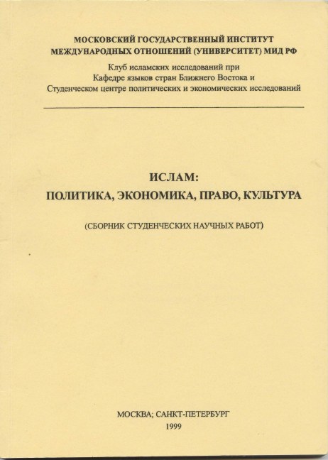 ИСЛАМ: ПОЛИТИКА, ЭКОНОМИКА, ПРАВО, КУЛЬТУРА/ Под ред. Р.И. Беккина (Выпуск 1). - М.-СПб., 1999. - 88 с.