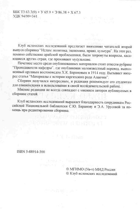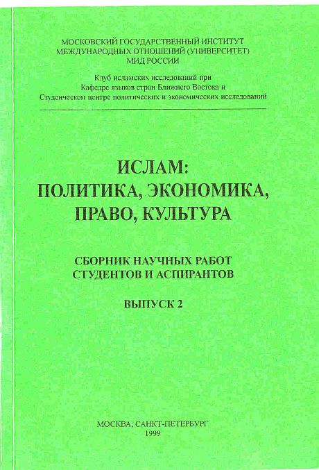 ИСЛАМ: ПОЛИТИКА, ЭКОНОМИКА, ПРАВО, КУЛЬТУРА/ Под ред. Р.И. Беккина (Выпуск 2). - М.-СПб., 1999. - 91 с.